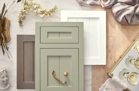 Cost-effective cabinet transformation with new doors, finishes, and hardware for a fresh, updated look.